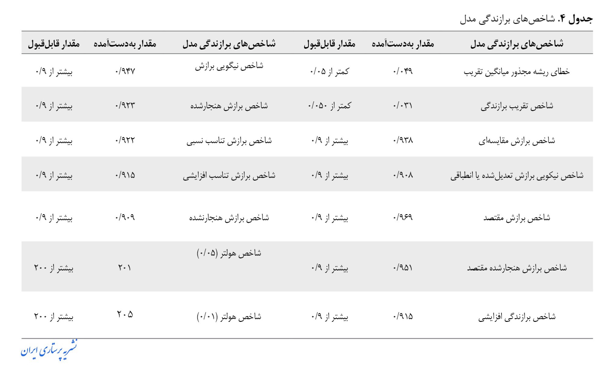 برای بررسی برازندگی مدل از شاخصهای آمادهشده در جدول شماره 4 استفاده شده است.